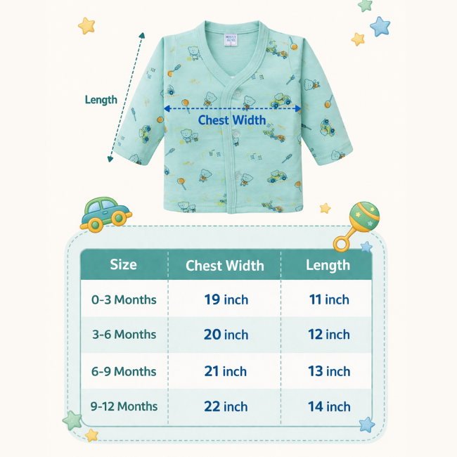 Hassle-free dressing with front open design. Soft cotton fabric ensures newborn safety. Must-have for first-time parents.